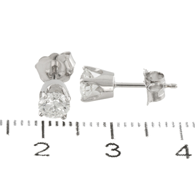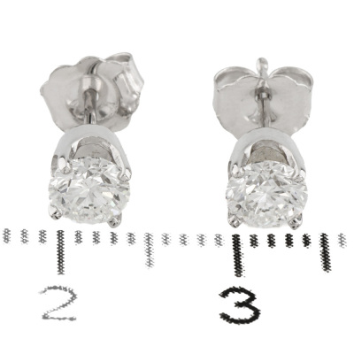 Diamond stud earrings with 2 round brilliant cut Natural Diamonds totalling 0.81ct (with GIA Summary Reports graded as E VS2 #6532489155, 5523305593). 18ct white gold. Weight: 1.2g. (New)