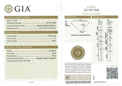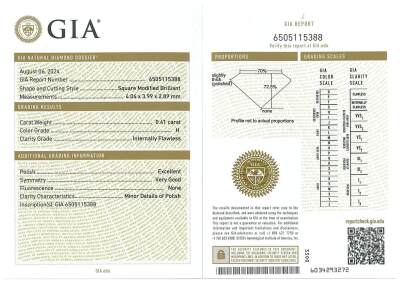 A loose pair of princess cut Natural Diamonds totalling 0.81ct (with GIA summary reports graded as H Internally Flawless #6505115388 & H VVS1 # 2517817508) (New)