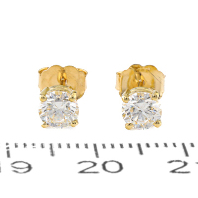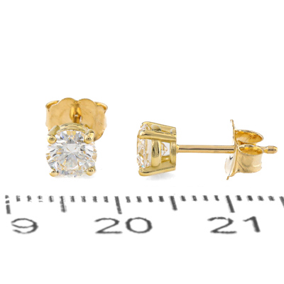 Diamond stud earrings with 2 round brilliant cut Natural Diamonds totalling 0.82ct (with GIA Dossier Reports graded as D SI1 #7516943224, 1518358691). 18ct yellow gold. Weight: 1.0g. (New)