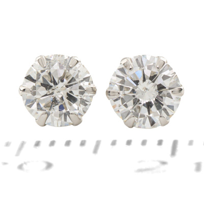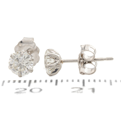 Diamond stud earrings with round natural Diamonds totalling 0.83ct (Estimated grading: H SI-P1). Platinum-900 with 18ct white gold backs. Weight: 0.7g. (Pre-owned)