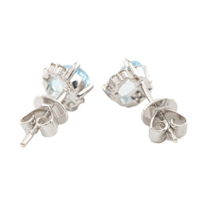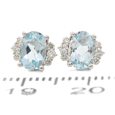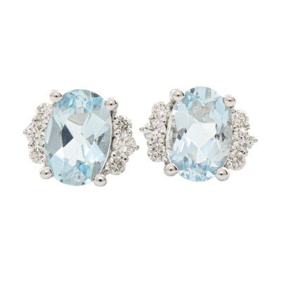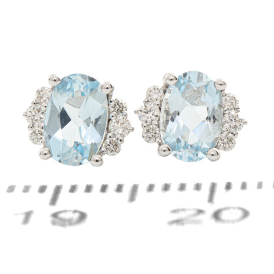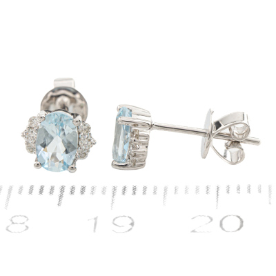 Aquamarine and Diamond earrings with oval shape Natural Aquamarine totalling 0.85ct and round Natural Diamonds totalling 0.13ct. 14ct white gold. Weight: 1.6g. (New)