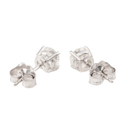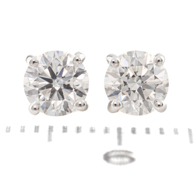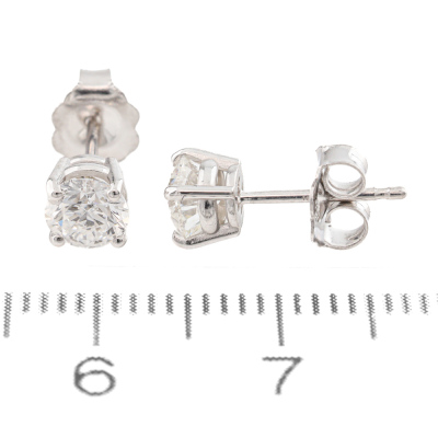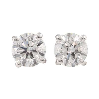 Diamond stud earrings with 2 round brilliant cut Natural Diamonds totalling 0.85ct (with GIA Dossier Reports graded as D VS2 #2514425321, 5526429097). 18ct white gold. Weight: 1.2g. (New)