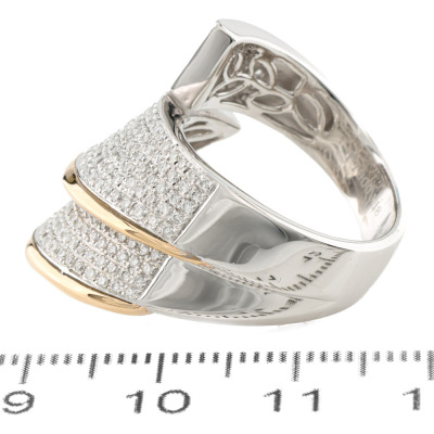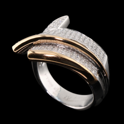 Diamond dress ring with round Natural Diamonds totalling 0.86ct (Estimated grading: H SI). Platinum - 900 and 18ct yellow gold. Ring size N½. Band width: 5.1mm - 7mm. Weight: 19.2g. (Pre-owned)