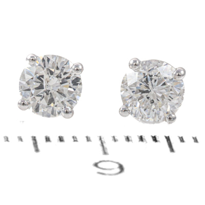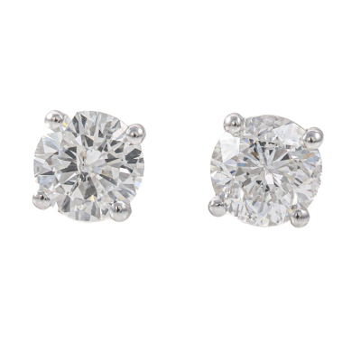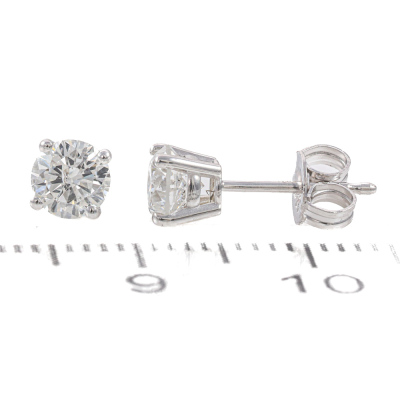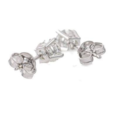 Diamond stud earrings with 2 round brilliant cut natural Diamonds totalling 0.86ct (Estimated grading: H-J P1 ). 18ct white gold. Weight 0.8g. (New)