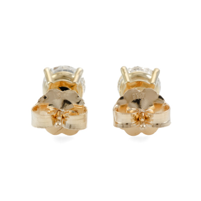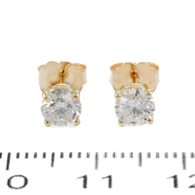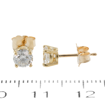 Diamond stud earrings with 2 round brilliant cut Natural Diamonds totalling 0.87ct (with GIA Dossier Reports graded as E SI1 #1528115159, 7513253586). 18ct yellow gold. Weight: 1.1g. (New)