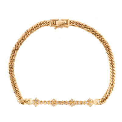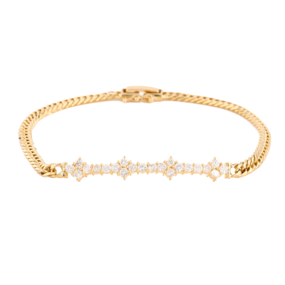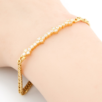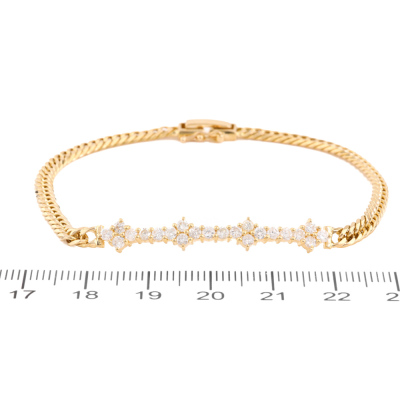 Diamond bracelet with round Natural Diamonds totalling 0.88ct (Estimated grading: GHI P1-P2). 18ct yellow gold. Length: 18cm. Weight: 8.5g. (Pre-owned)