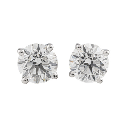 Diamond stud earrings with 2 round brilliant cut Natural Diamonds totalling 0.88ct (with GIA Dossier Reports graded as D VVS2#6521760909, 7508134141). 18ct white gold. Weight: 0.9g. (New)