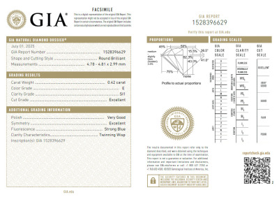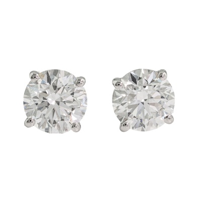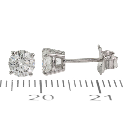 Diamond stud earrings with 2 round brilliant cut Natural Diamonds totalling 0.88ct (with GIA Dossier Reports graded as E SI1 #6531039360, 1528396629) 18ct white gold. Weight: 1.0g. (New)