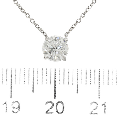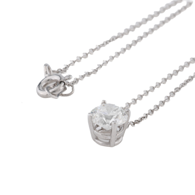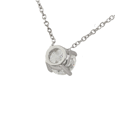Diamond solitaire pendant with round brilliant cut Natural Diamond of 0.90ct (with GIA Diamond Dossier report graded as E SI1 #6532238567). 18ct white gold with attached chain. Length 42cm. Weight: 1.6g