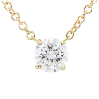Diamond Pendant with round brilliant cut Natural Diamond of 0.90ct (with GIA Diamond Report graded as H VVS1 #2516792816). 18ct yellow gold with 18ct yellow gold attached chain. Length: 45cm. Weight 3.1g (New)