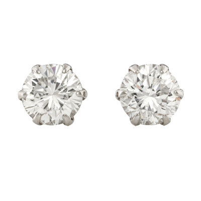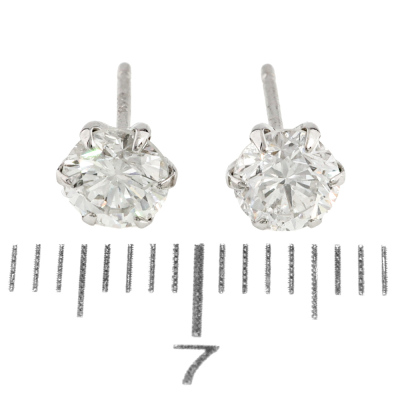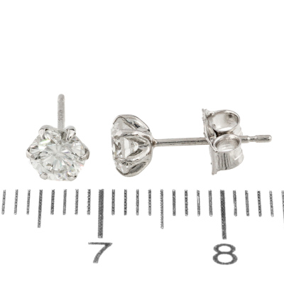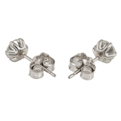 Diamond stud earrings with 2 round brilliant cut Natural Diamonds totalling 0.90ct (Estimated grading: G SI). Platinum-900 with 18ct white gold backs. Weight: 0.8g (Pre-owned)