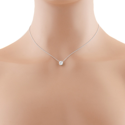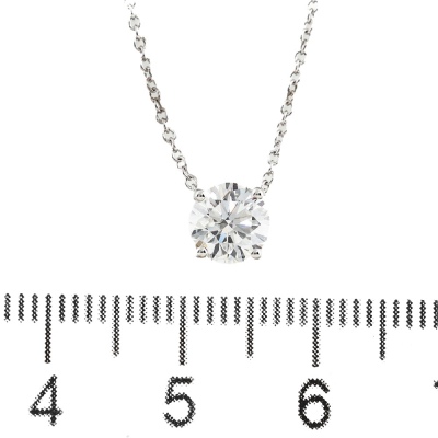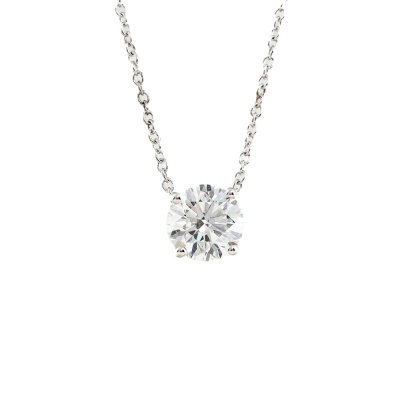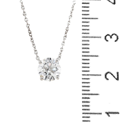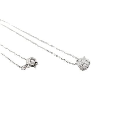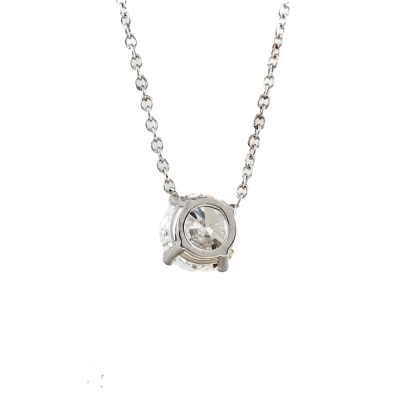 Diamond solitaire pendant with a round brilliant cut Natural Diamond of 0.90ct (with GIA Dossier Report graded as E VVS1 #6237317261). 18ct white gold with 18ct white gold chain attached. Length: 41cm. Weight 1.6g (New)