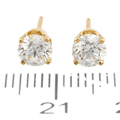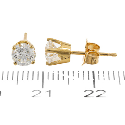 Diamond stud earrings with 2 round brilliant cut Natural Diamonds totalling 0.91ct (with GIA Summary Reports graded as D SI2 #2527290653, 2517233067