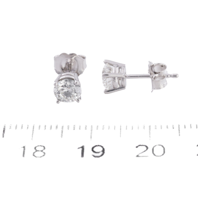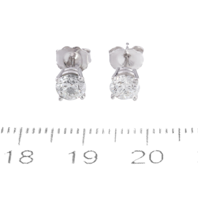Diamond stud earrings with 2 round brilliant cut Natural Diamonds totalling 0.91ct (with GIA Dossier Reports graded as D VS2 #3515104712 & E VS2 #1528701413). 18ct white gold. Weight: 1.1g. (New)