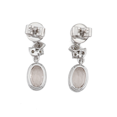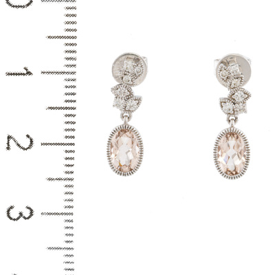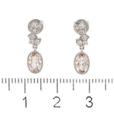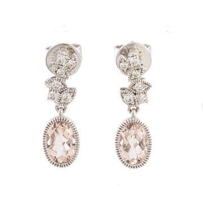 Morganite and Diamond earrings with oval shape Natural Morganite totalling 0.91cts and round Natural Diamonds totalling 0.13cts. 14ct white gold. Weight: 1.8g. (New)