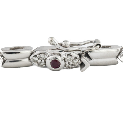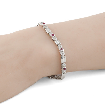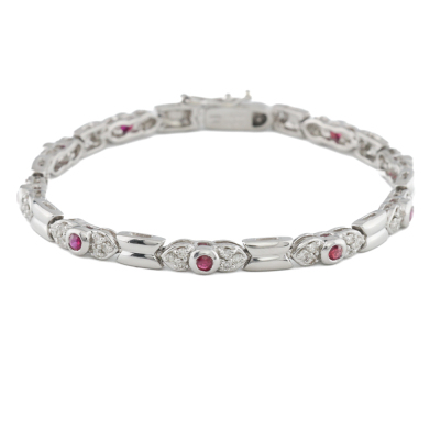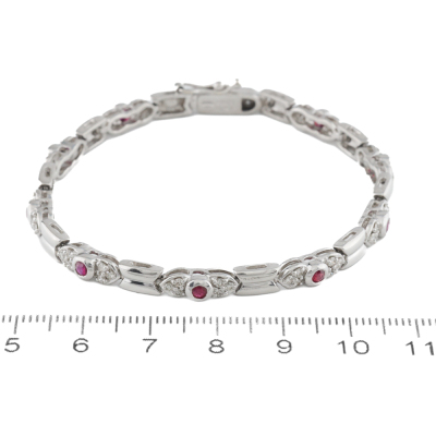 Ruby and Diamond bracelet with round Natural Ruby totalling 0.91ct and round Natural Diamonds totalling 1.00ct (Estimated grading: I-J SI). Platinum - 900. Length: 18cm. Weight: 22.9g. (Pre-owned)
