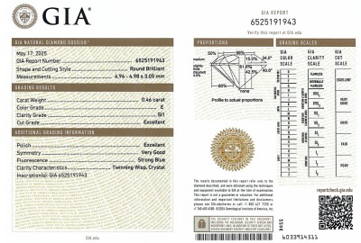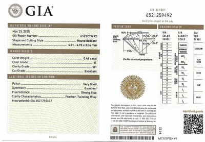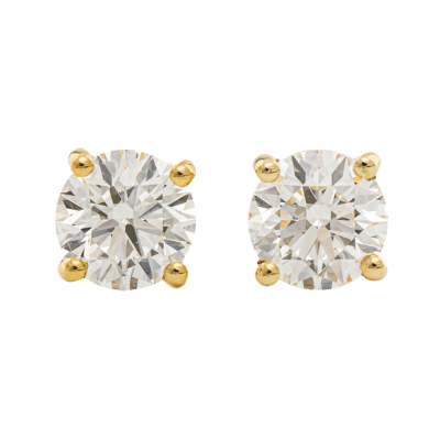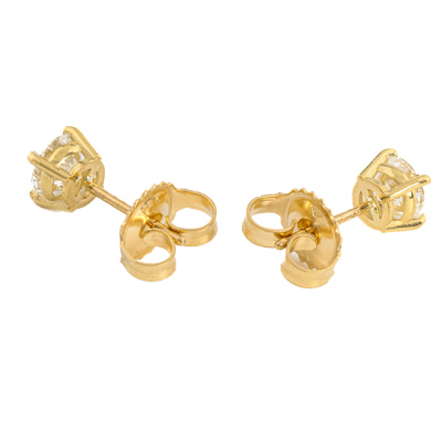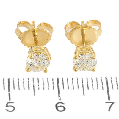 Diamond stud earring with round brilliant cut Natural Diamonds totalling 0.92ct (with GIA Dossier Reports graded as E SI1 #6525191943, 6521259492). 18ct yellow gold. Weight: 1.4g. (New)