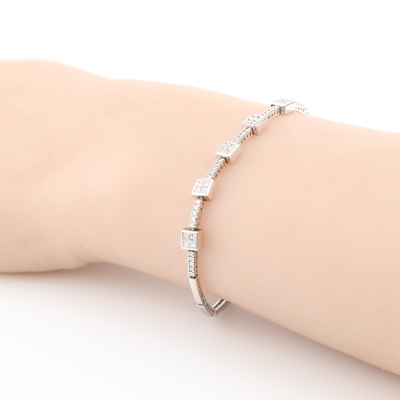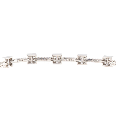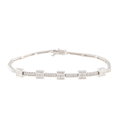 Diamond Bracelet with round & princess cut Natural Diamonds totalling 0.93ct (Estimated grading: H-I SI). 18ct white gold. Length: 17cm. Weight: 8.9g. (pre-owned)