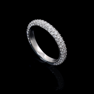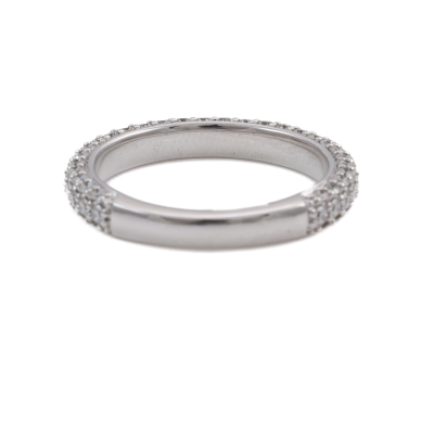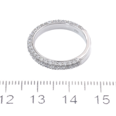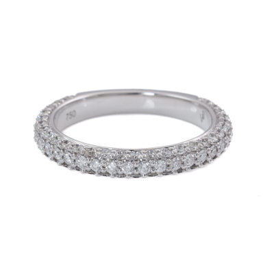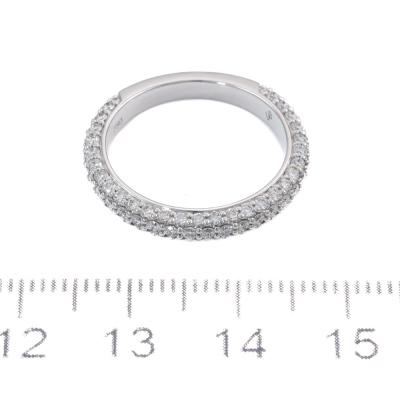 Diamond 3/4 hoop band ring with round Natural Diamonds totalling 0.95ct (Estimated grading: G-H VS). 18ct white gold Ring size: L3/4 - Ring resizing is not recommended. Band width: 2.6mm - 2.8mm. Weight: 4.3g. (As New)