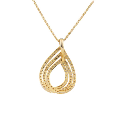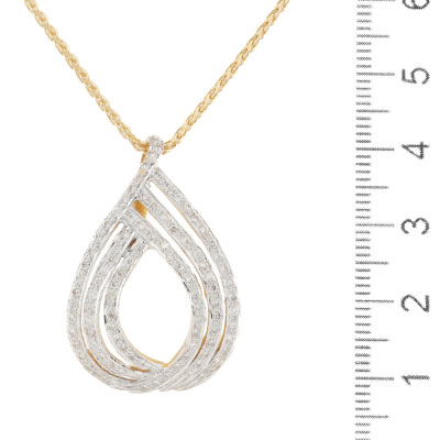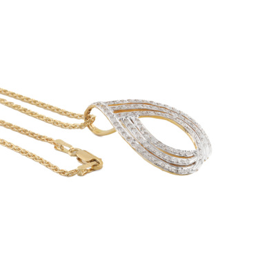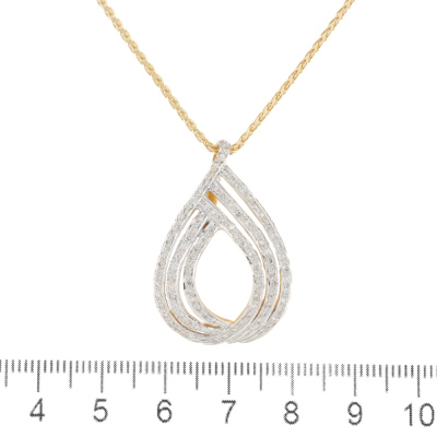 Diamond pendant with round Natural Diamonds totalling approximately 0.95ct (Estimated grading: K-L SI). 18ct yellow and white gold with 41.5cm 18ct yellow gold chain. Weight: 9.8g. (Pre-owned)