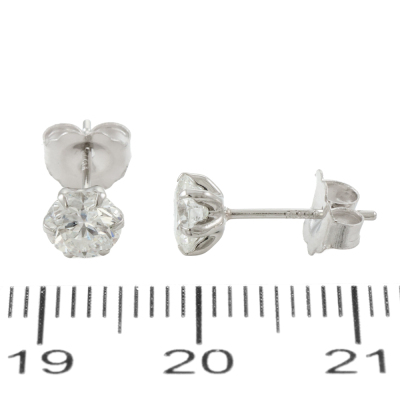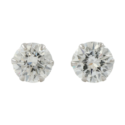 Diamond stud earrings with 2 round brilliant cut Natural Diamonds totalling 0.96ct (Estimated grading: H-I SI-P1). Platinum-900 with 18ct white gold backs. Weight: 0.6g