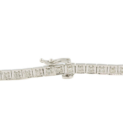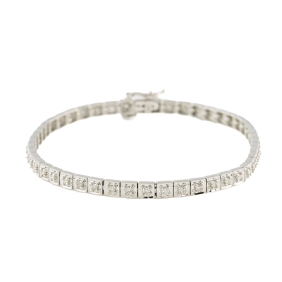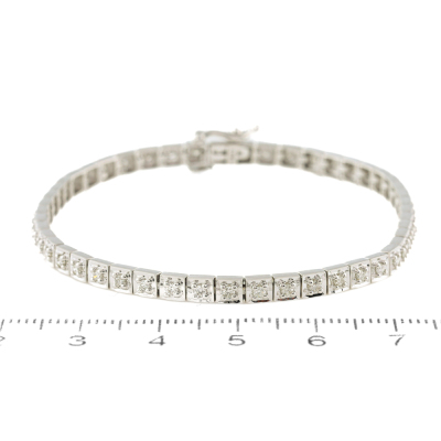 Diamond tennis bracelet with 49 round Natural Diamonds totalling 0.99ct (Estimated grading: I-J SI). 14ct white gold. Length: 18cm. Weight: 8.5g. (New)