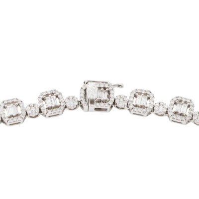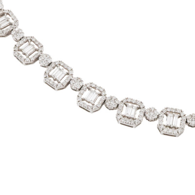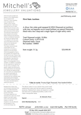 Diamond necklace with round & baguette cut Natural Diamonds totalling 10.00ct (Estimated grading: GH VS-SI). 18ct white gold. Length: 42cm. With Valuation Certificate #422445.