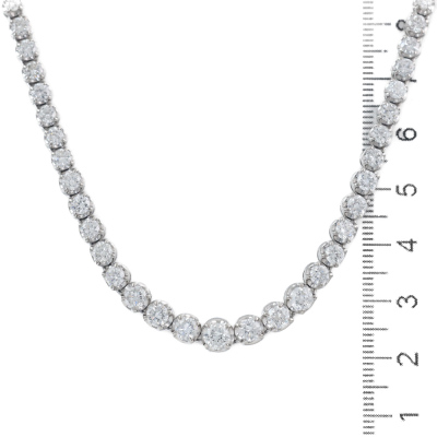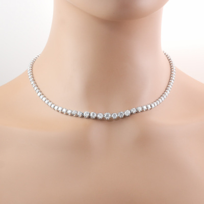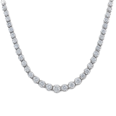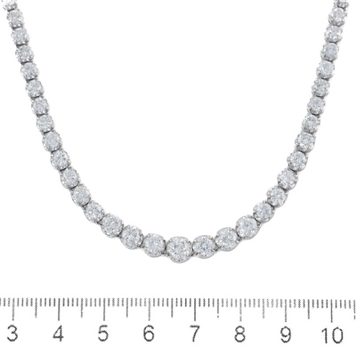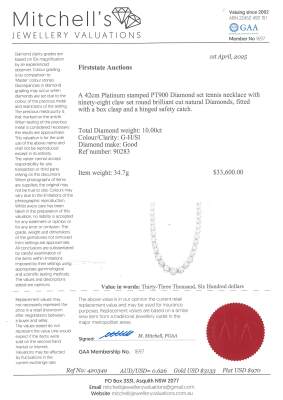 Diamond tennis necklace with round Natural Diamonds totalling 10.00ct (Estimated grading: G-H SI). Platinum - 900. Length: 42cm. Weight: 34.7g. With Valuation Certificate #420349. (Pre-owned)