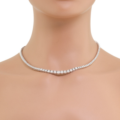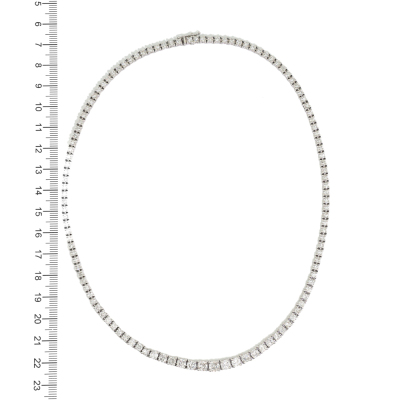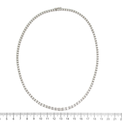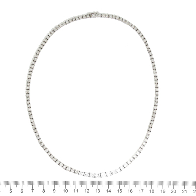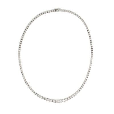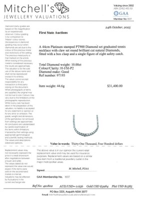Diamond tennis necklace with graduated round Natural Diamonds totalling 10.00ct (Estimated grading: H-I SI-P2). Platinum - 900. Length: 44cm. Weight: 44.6g. With Valuation Certificate #421802. (Pre-owned)