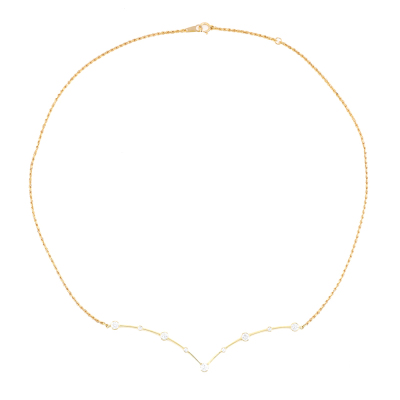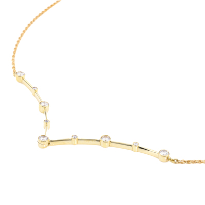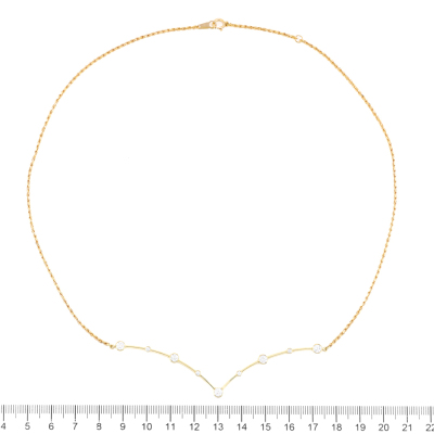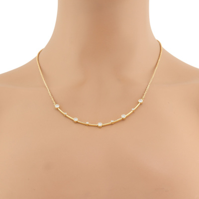 Diamond necklace with 9 round Natural Diamonds totalling 1.00ct (Estimated grading: J VS-SI). 18ct yellow gold with attached 18ct yellow gold adjustable chain. Length: 47cm-50cm. Weight: 10.7g. (Pre-owned)