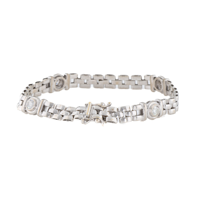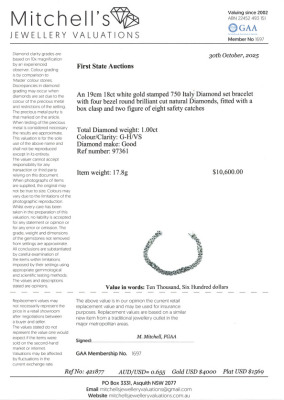 H link bracelet with 4 round Natural Diamonds totalling 1.00ct (Estimated grading: G-H VS). 18ct white gold. Length: 19cm. Width: 7.4mm. Made in Italy. Weight: 17.8g. With Valuation Certificate #421877. (Pre-owned)