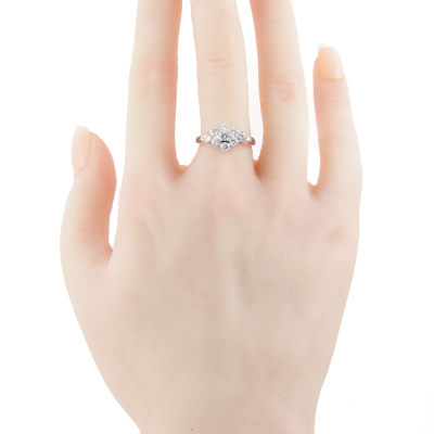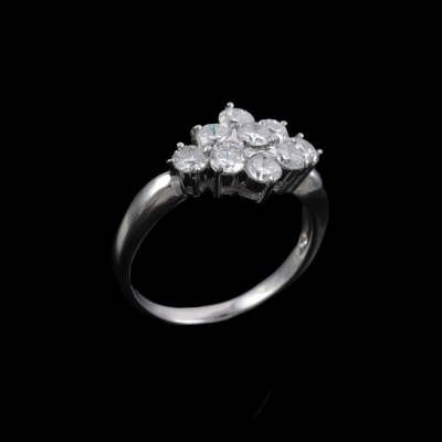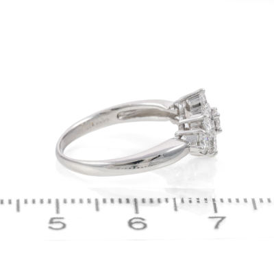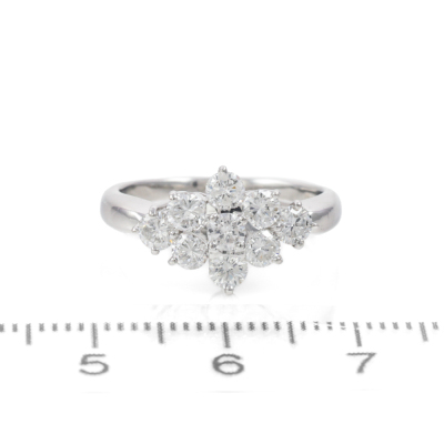 Diamond dress ring with 9 round Natural Diamonds totalling 1.00ct (Estimated grading: F-G VS-SI). Platinum - 900. Ring size J3/4. Band width: 1.7mm - 2.9mm. Weight: 3.8g. (Pre-owned)