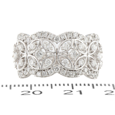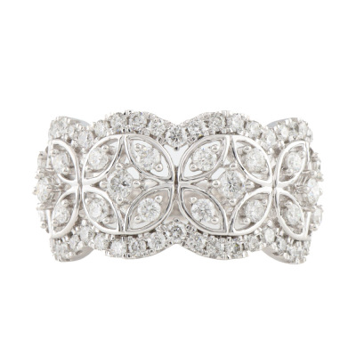 Diamond dress ring with round Natural Diamonds totalling 1.00ct (Estimated grading: H SI). 14ct white gold. Ring size: M½. Band width: 4.9mm - 2.9mm. Weight: 4.5g. (New)