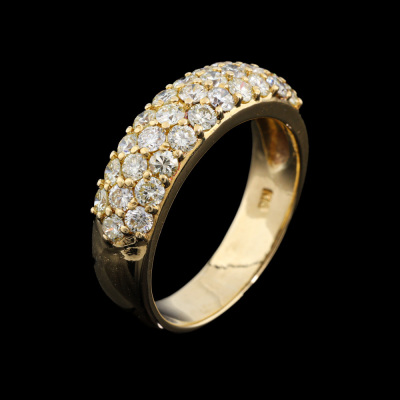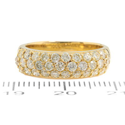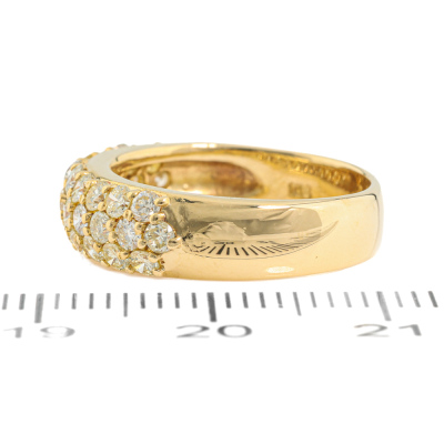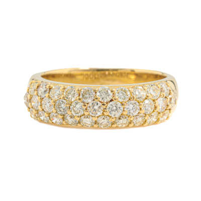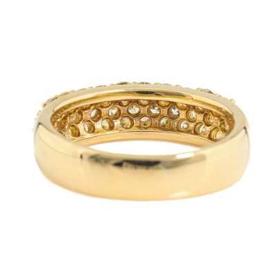 Diamond dress ring with round Natural Diamonds totalling 1.00ct (Estimated grading: Light Yellow VS). 18ct yellow gold. Ring size K1/4. Band width: 4.2mm - 5mm. Weight: 5.7g. (Pre-owned)