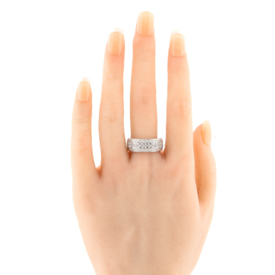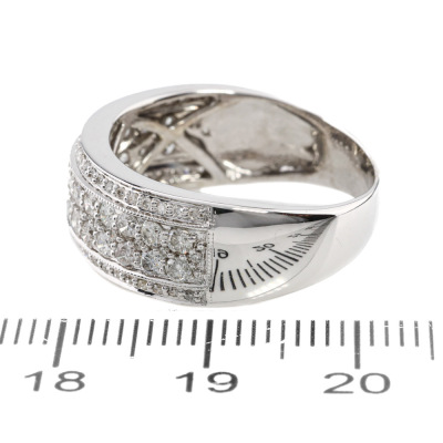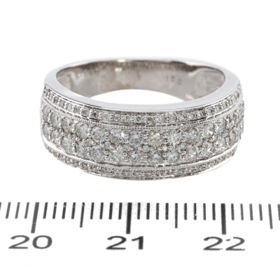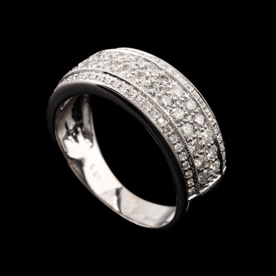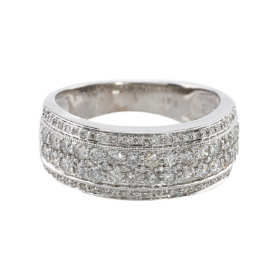 Diamond dress ring with round Natural Diamonds totalling 1.00ct (Estimated grading: HIJ P1). 18ct white gold. Ring size P3/4. Band width: 4mm - 6.5mm. Weight: 5.9g. (Pre-owned)