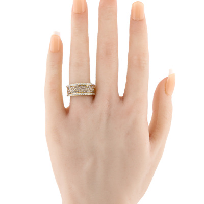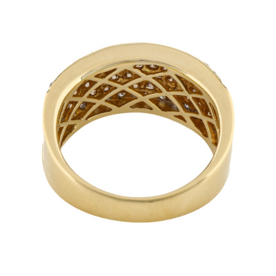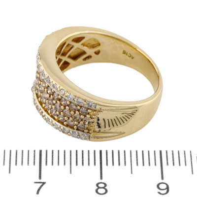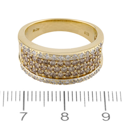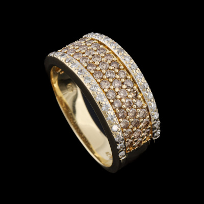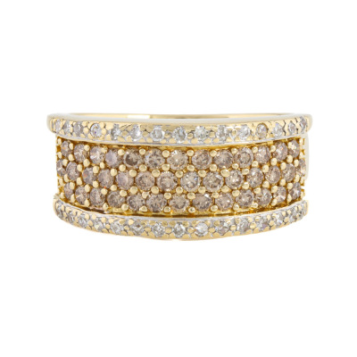 Diamond dress ring with round Natural Diamonds totalling approximately 1.00ct (Estimated grading: champagne & H-I SI-P1). 18ct yellow gold. Band width: 4.1mm - 6.6mm.