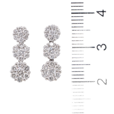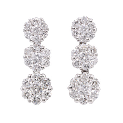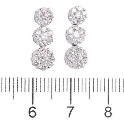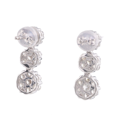 Diamond drop earrings with round Natural Diamonds totalling 1.00ct (Estimated grading: G-H SI). 18ct white gold with 18ct white gold & silicon backs. Length: 1.6cm. Weight: 2.8g. (Pre-owned)