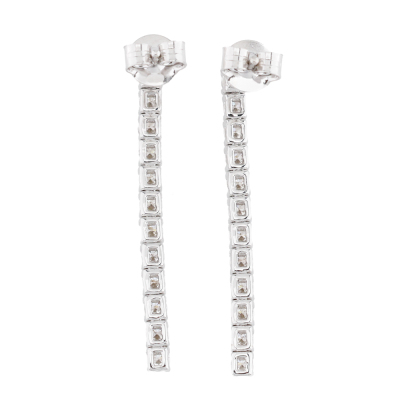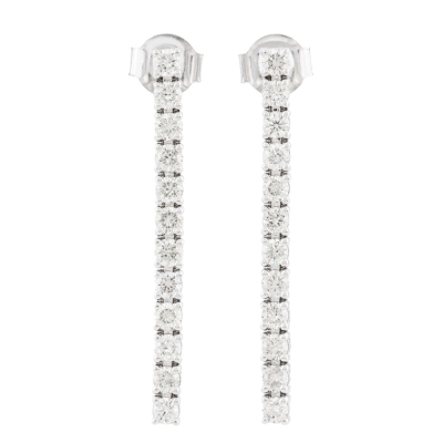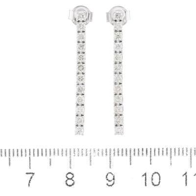 Diamond drop earrings with 24 round Natural Diamonds totalling 1.00ct (Estimated grading: I-J SI). 14ct white gold with 14ct white gold backs. Length: 3.0cm. Weight: 2.5g. (New).