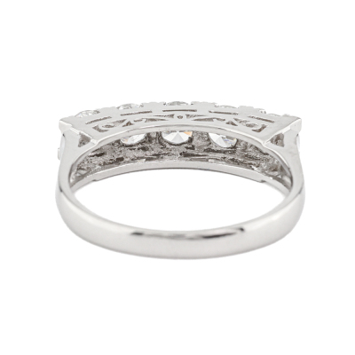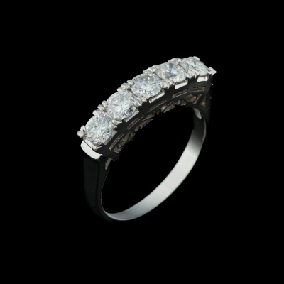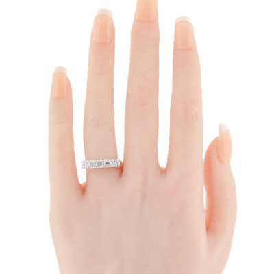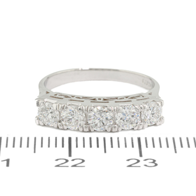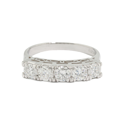 Diamond eternity ring with 5 round Natural Diamonds totalling 1.00ct (Estimated grading: G-H SI-P1). Platinum 900. Ring size M. Band width: 2.1mm - 2.8mm. Weight: 4.6g. (As New)