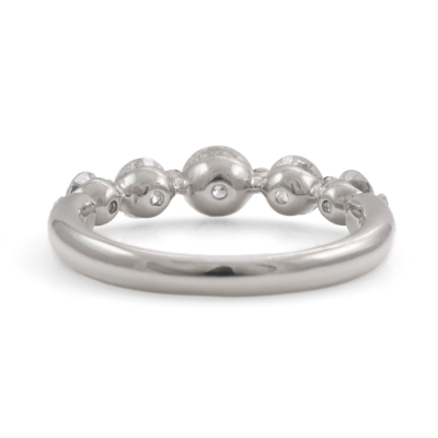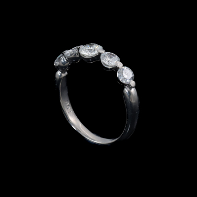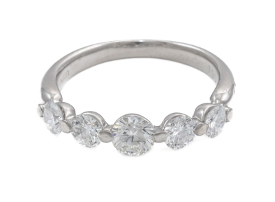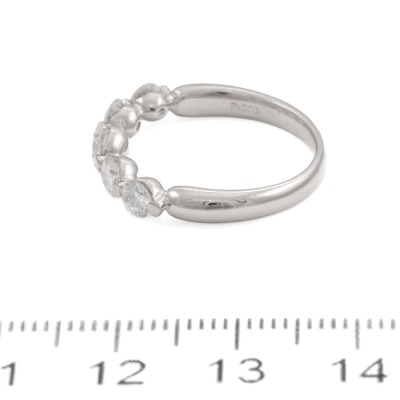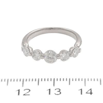 Diamond eternity ring with 5 round Natural Diamonds totalling 1.00ct (Estimated grading: H-I SI). Platinum - 900. Ring size K1/4. Band width: 2.2mm - 3.1mm. Weight: 4.2g. (Pre-owned)