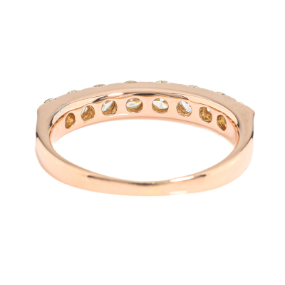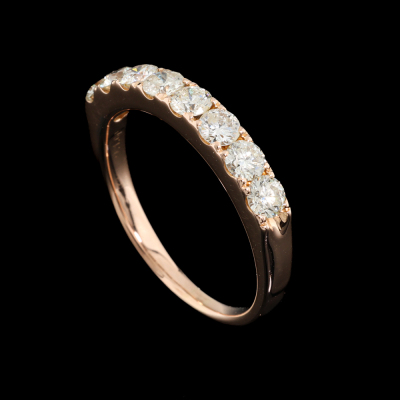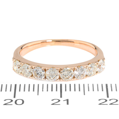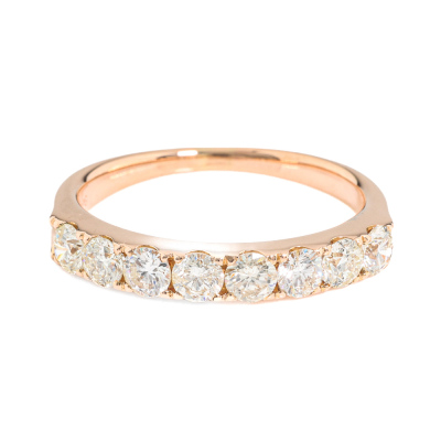 Diamond eternity ring with 8 round Natural Diamonds totalling 1.00ct (Estimated grading: I-J SI-P1). 18ct rose gold. Ring size N1/4. Band width: 1.7mm - 2.8mm. Weight: 3.5g. (Pre-owned)