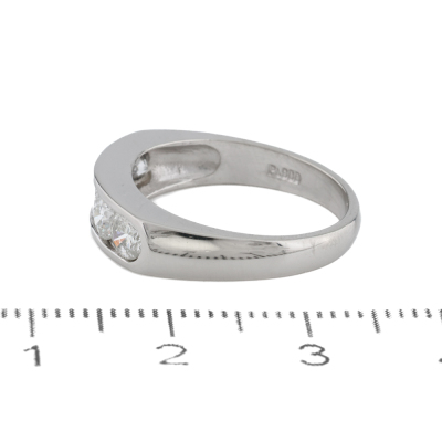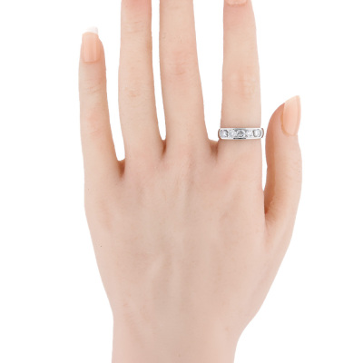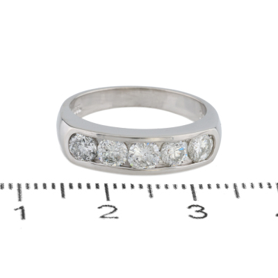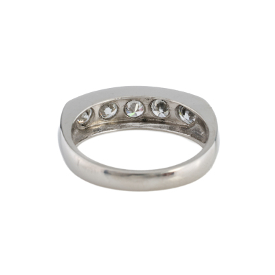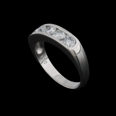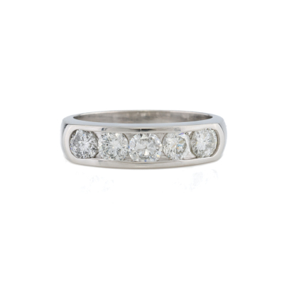 Diamond eternity ring with 5 round Natural Diamonds totalling 1.00ct (Estimated grading: G-H P1). Platinum - 900. Ring size: K1/2. Band width: 2.7mm - 3.9mm. Weight: 5.9g. (pre-owned)