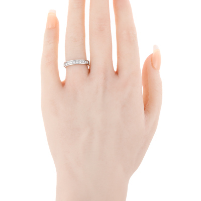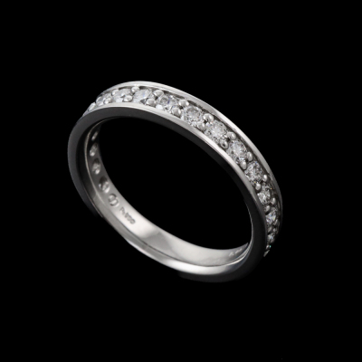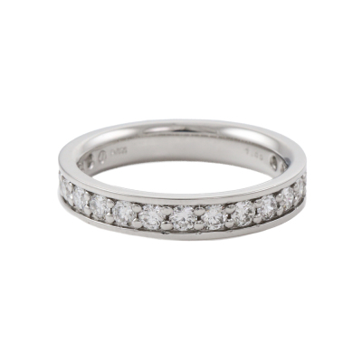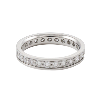 Diamond full hoop eternity ring with 25 round Natural Diamonds totalling 1.00ct (estimated grading: H-I SI). Platinum - 950. Ring size K 1/2. Band width: 2.5mm. Weight: 5.0g..