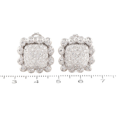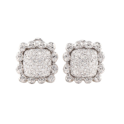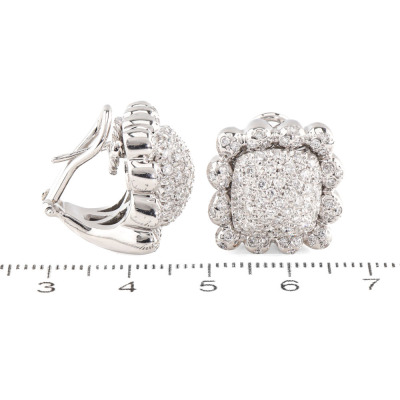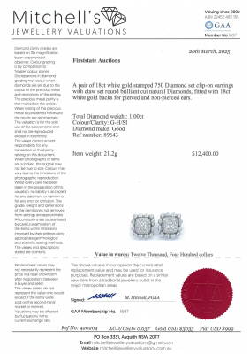 Diamond clip-on earrings (for both pierced ears & non-pierced ears) with round Natural Diamonds totalling 1.00ct (Estimated grading: G-H SI). 18ct white gold. Weight: 21.2g. With Certificate #420204. (Pre-owned)