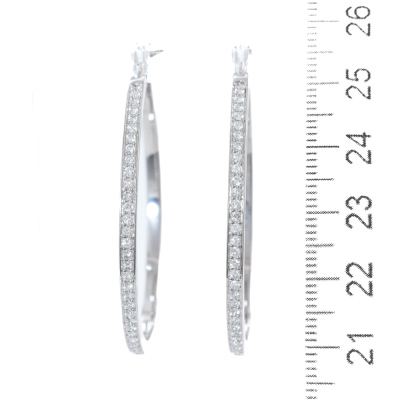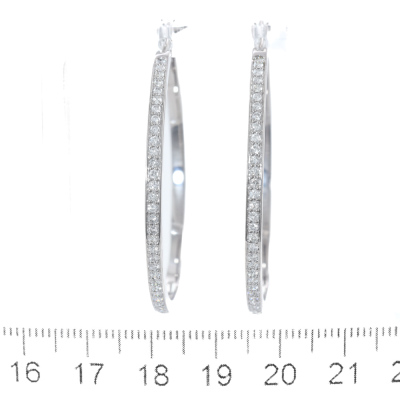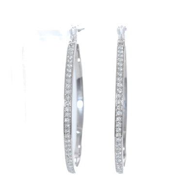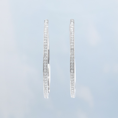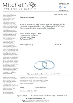 Diamond hoop earrings with round Natural Diamonds totalling 1.00ct (Estimated grading: H-I SI-P1). 18ct white gold. Hoop diameter: approximately 4.3cm. Weight: 12.2g. With Valuation Certificate #419858. (Pre-owned)
