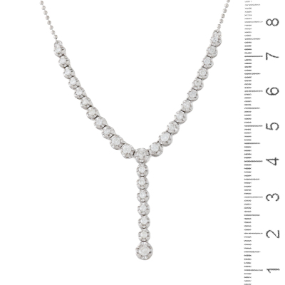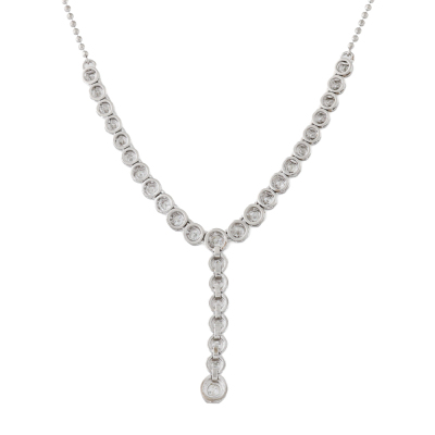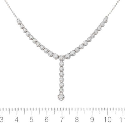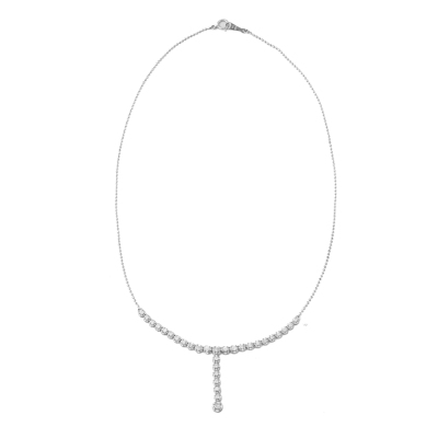 Diamond drop necklace with 30 round Natural Diamonds totalling 1.00ct (Estimated grading: H-I P1). Platinum - 850. Length: 43cm. Drop length: 2.7cm. Weight: 9.1g. (Pre-owned)