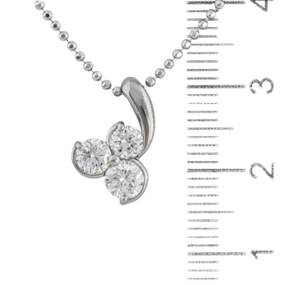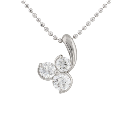 Diamond dress pendant with 3 round Natural Diamonds totalling 1.00ct (Estimated grading: G VS-SI). Platinum - 900 with 42cm Platinum - 850 adjustable chain. Weight: 4.7g. (pre-owned)
