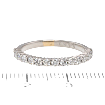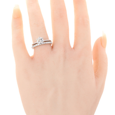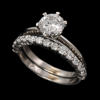 Diamond solitaire ring and eternity ring set. 1) Diamond solitaire ring with a round brilliant cut Natural Diamond of 1.00ct (With GIA Diamond Grading Report graded as: H VS2 #6255868188). Ring size L. Band width: 2mm. 2) Diamond eternity ring with 14 round Natural Diamonds totalling approximately 0.42ct (Estimated grading: G SI-P1). Ring size L. Both Platinum - 950. Total weight: 7.9g. (Pre-owned).