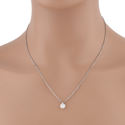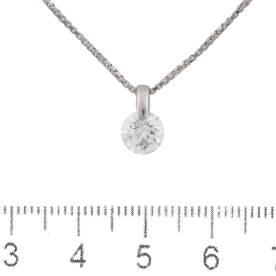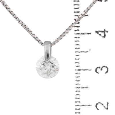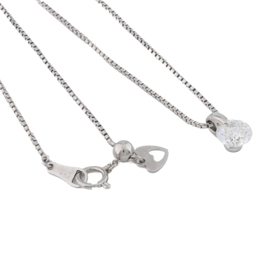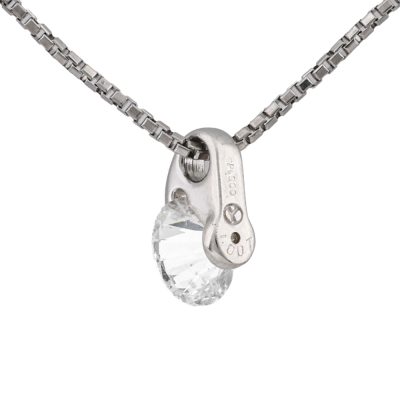 Diamond solitaire pendant with a round brilliant cut Natural Diamond of 1.00ct (Estimated grading: G P1-P2). Platinum - 900 with 46.5cm platinum - 850 adjustable chain. Weight: 5.6g.