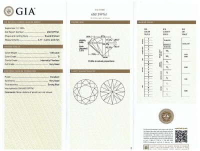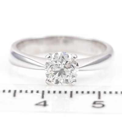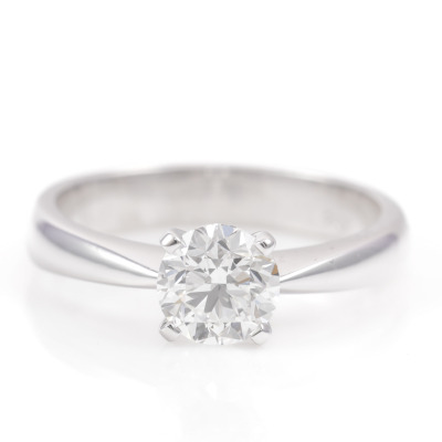 Diamond solitaire ring with round brilliant cut Natural Diamond of 1.00ct (with GIA Report graded as D Internally Flawless #6501399761). 18ct white gold. Ring size M. Band width: 3.5mm - 2.7mm. Weight: 4.3g. (New)